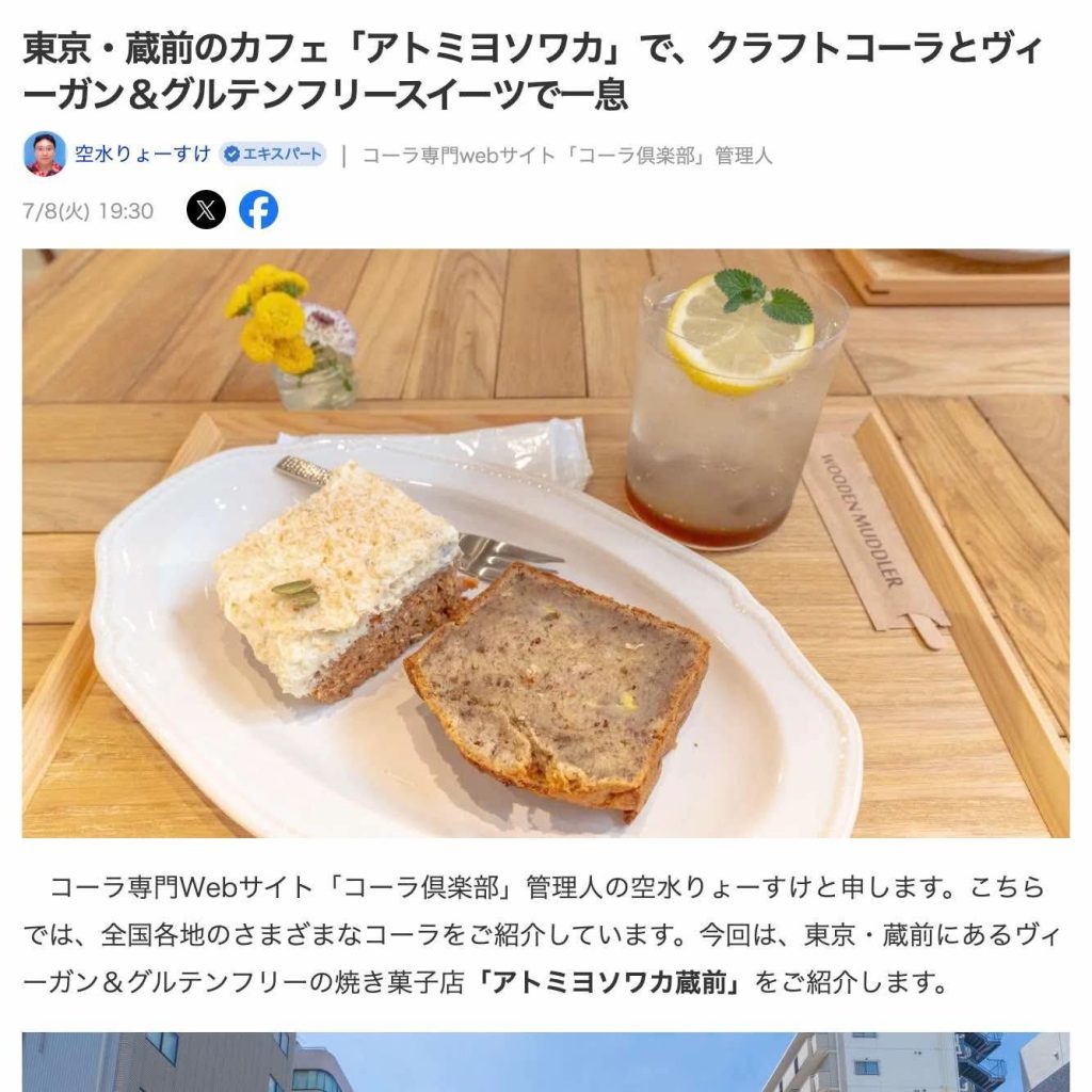 Yahoo!ニュースにてアトミヨソワカ蔵前と共に日々乃コーラも紹介されました